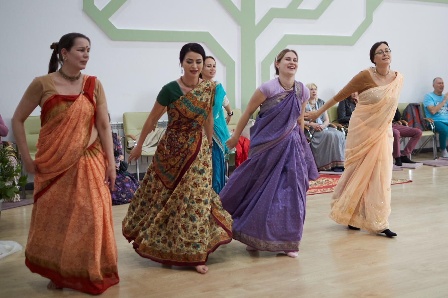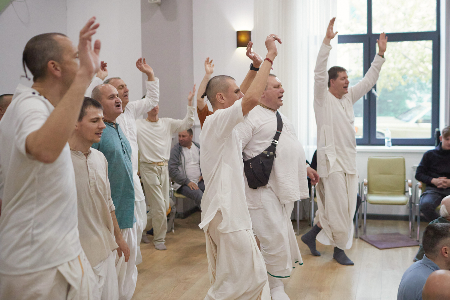 “Так много счастливых преданных вместе слушали о Кришне и воспевали святые имена.”